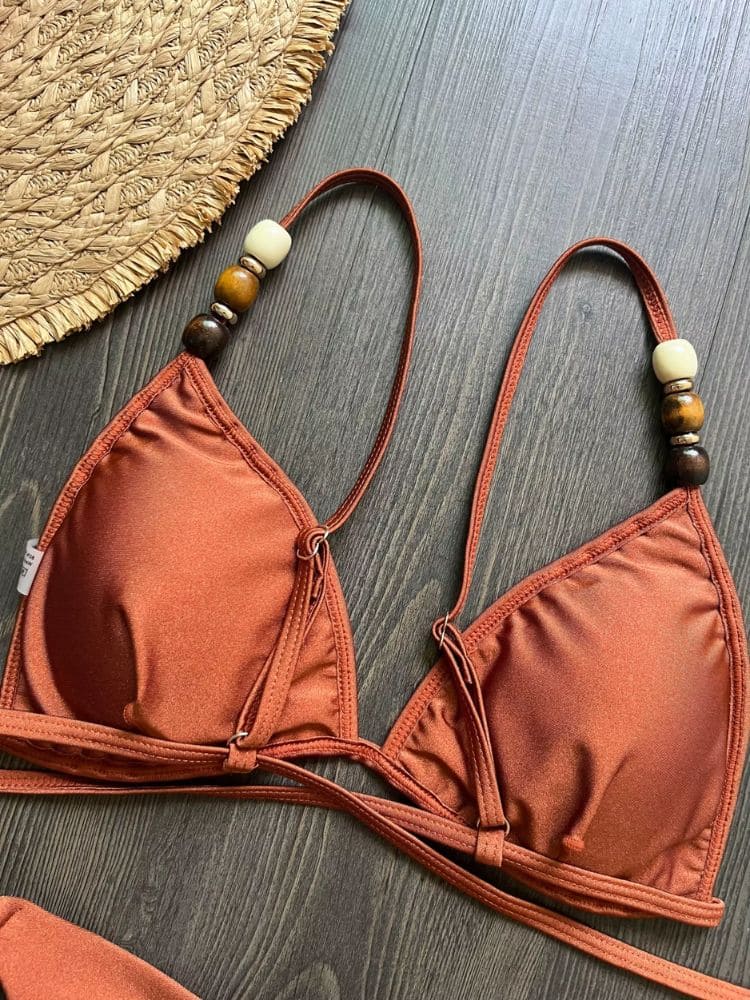 Biquíni Feminino Marrom Trançado com Bojo que Valoriza o Corpo – Tendência Verão 2026